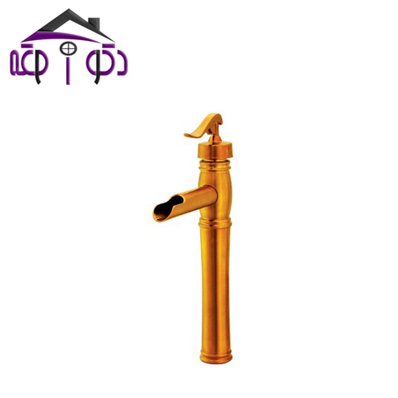 - شیر روشویی پایه بلند مدل ریور طلایی کرومات