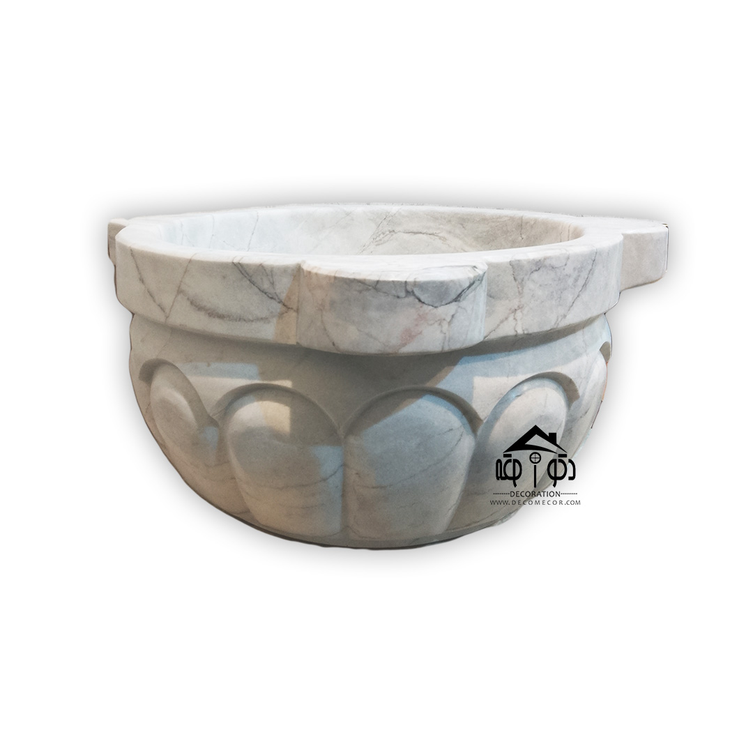 کاسه سنگی حمام ترکی سفید یخی الیگودرز مدل گلبرگTurkish-Hammam Stone Bowl White-Icy Aligodarz Golbarg Model